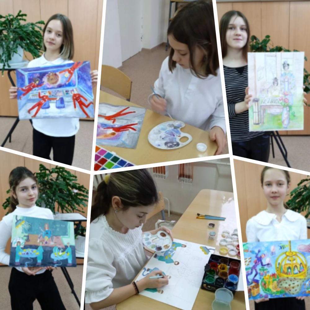 В этом году от лицея приняли участие три художницы из 5 «Б» класса: Макарова Елизавета с акварельной работой «Учитель биологии – «как рыба в воде», Костромитина Анжелика с композицией, выполненной гуашью «Учитель химии в действии», Тюлюкина Екатерина с работой «Урок астрономии на космическом корабле» и ученица 7 «А» класса – Цибилева Елизавета с графической композицией «Урок каллиграфии в Японии». Девочки представили на конкурс яркие запоминающиеся работы.