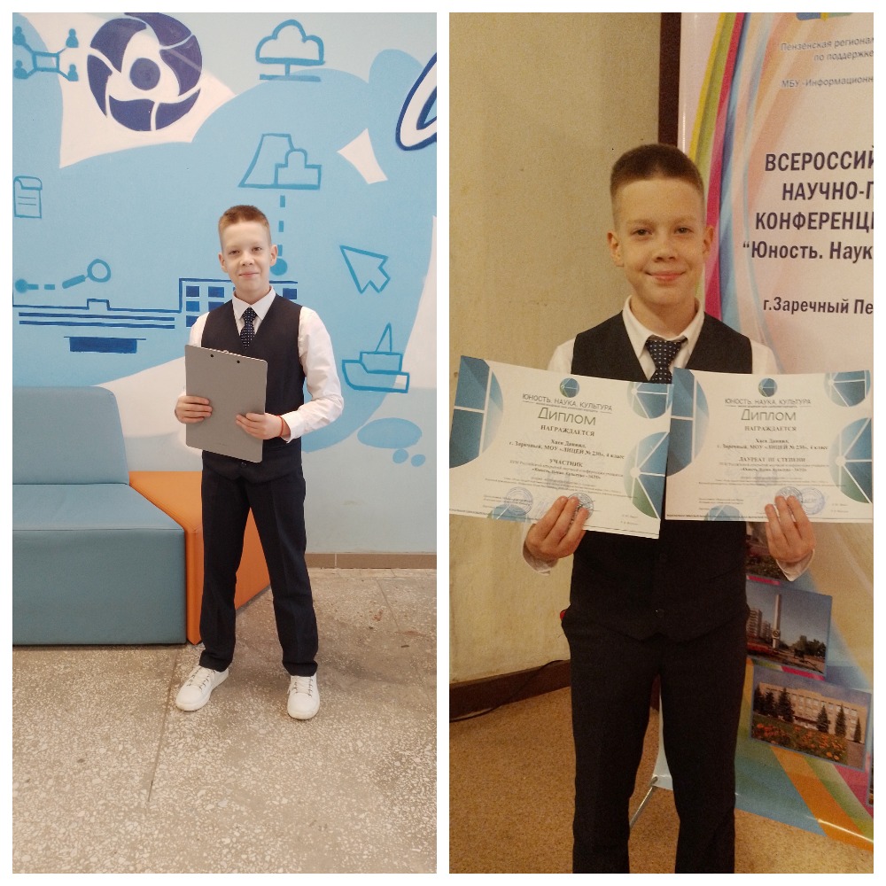 28 октября ученик 4"А" класса Хаев Даниил достойно представил наш лицей в XVIII Российской открытой конференции учащихся "Юность. Наука. Культура - ЗАТО". Даниил выступал с исследовательской работой на тему "Роль солдатской смекалки в победе в Великой Отечественной войне 1941-1945гг." и занял 3 место, продемонстрировав глубокие знания в области истории. Мы гордимся Даниилом и желаем ему дальнейших успехов в научно-исследовательской деятельности!