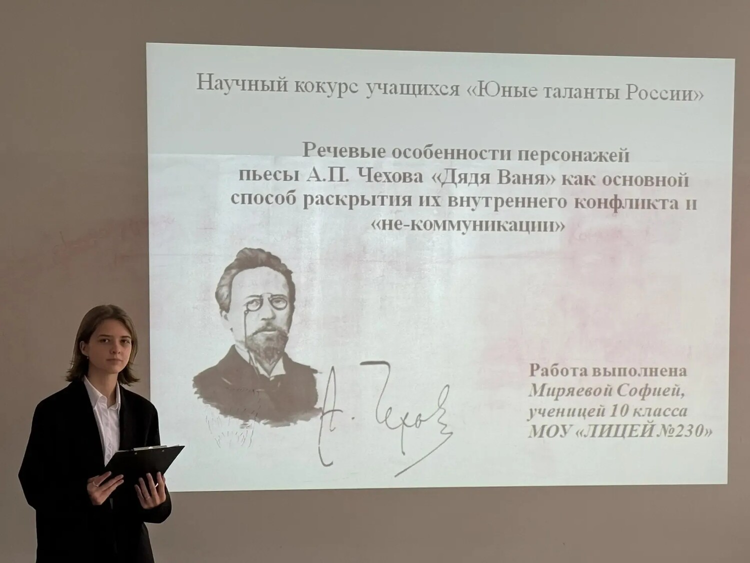 София заняла 1 место в секции «Гуманитарные науки», представив работу, посвященную творчеству А.П. Чехова.