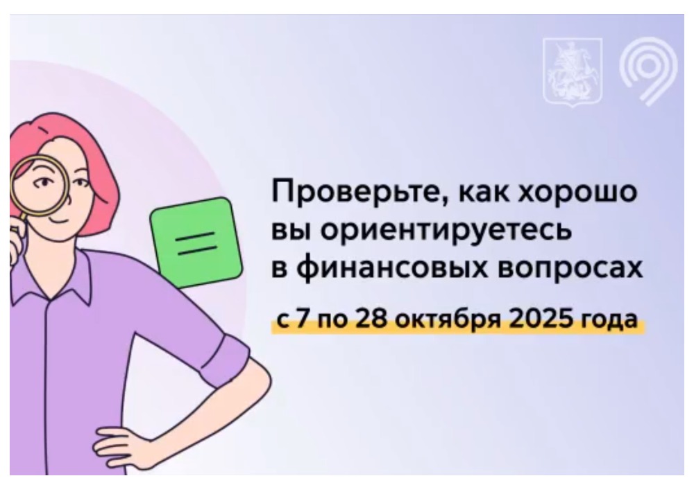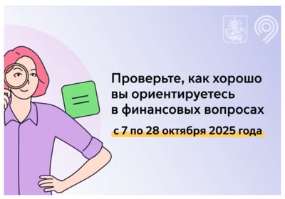 С 7 по 28 октября проходит VIII Всероссийский онлайн-зачёт по финансовой грамотности от Банка России. Проверь свои знания, получи полезные советы и именной сертификат с результатами! Пройти зачёт можно самостоятельно, всей семьёй или в классе — задания основаны на реальных жизненных ситуациях.